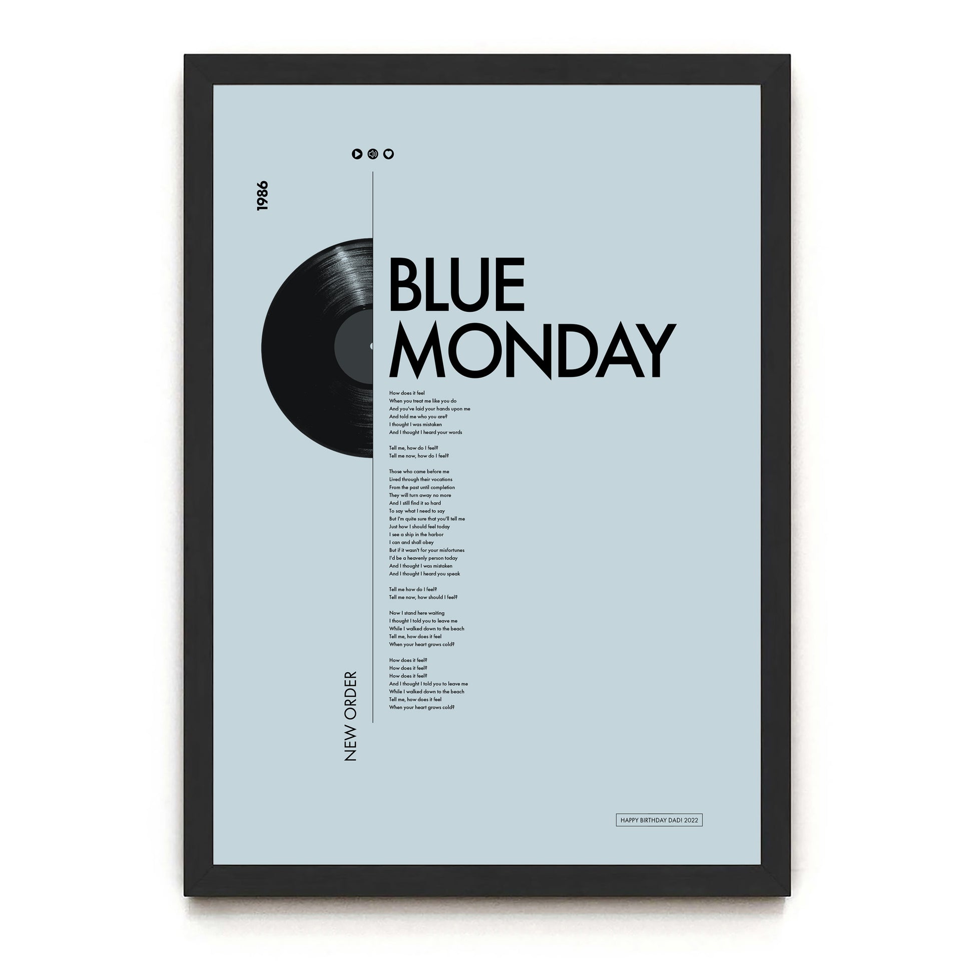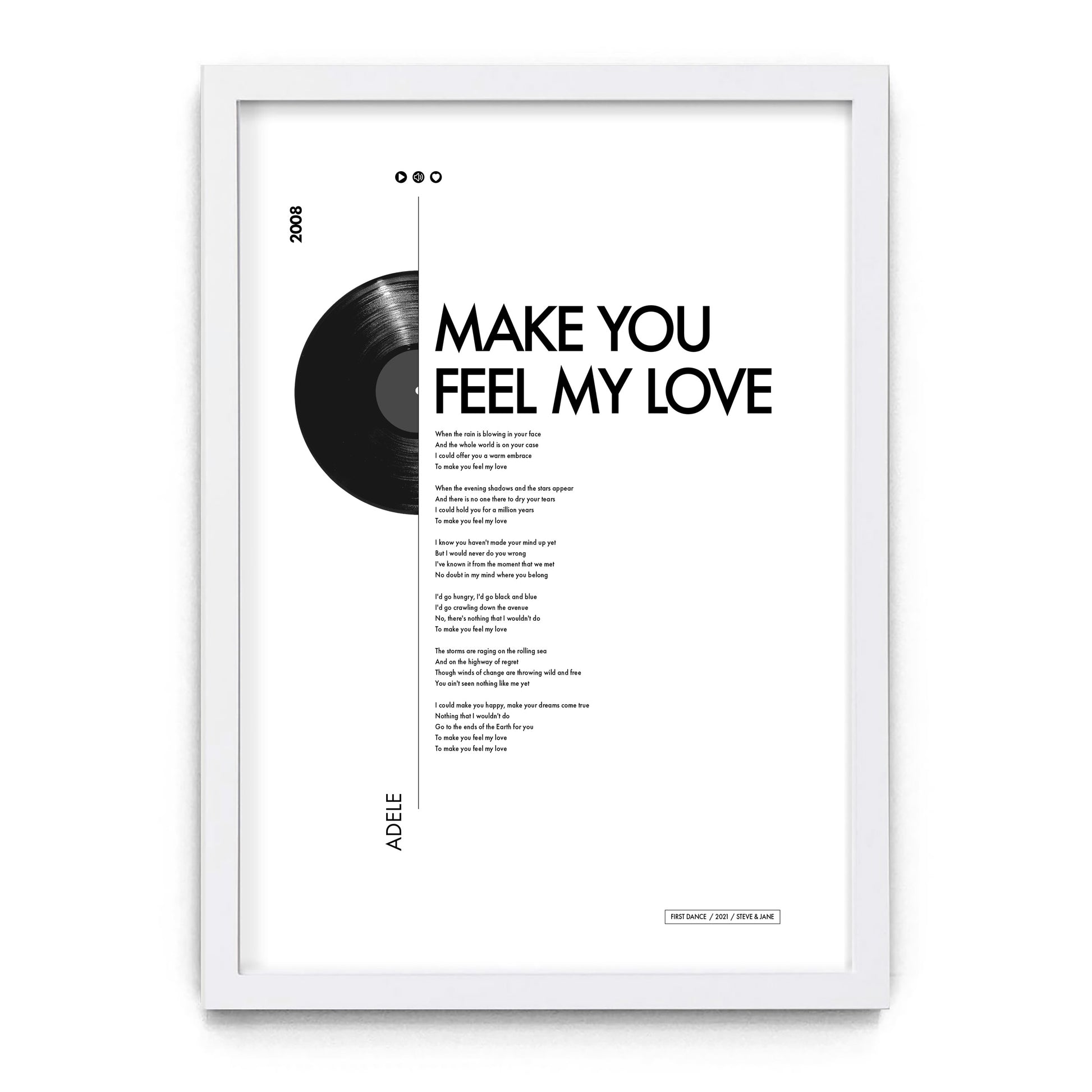 Simply pick your size and frame type, enter the song's name and artist and a special message (if required) and we'll take care of the rest.