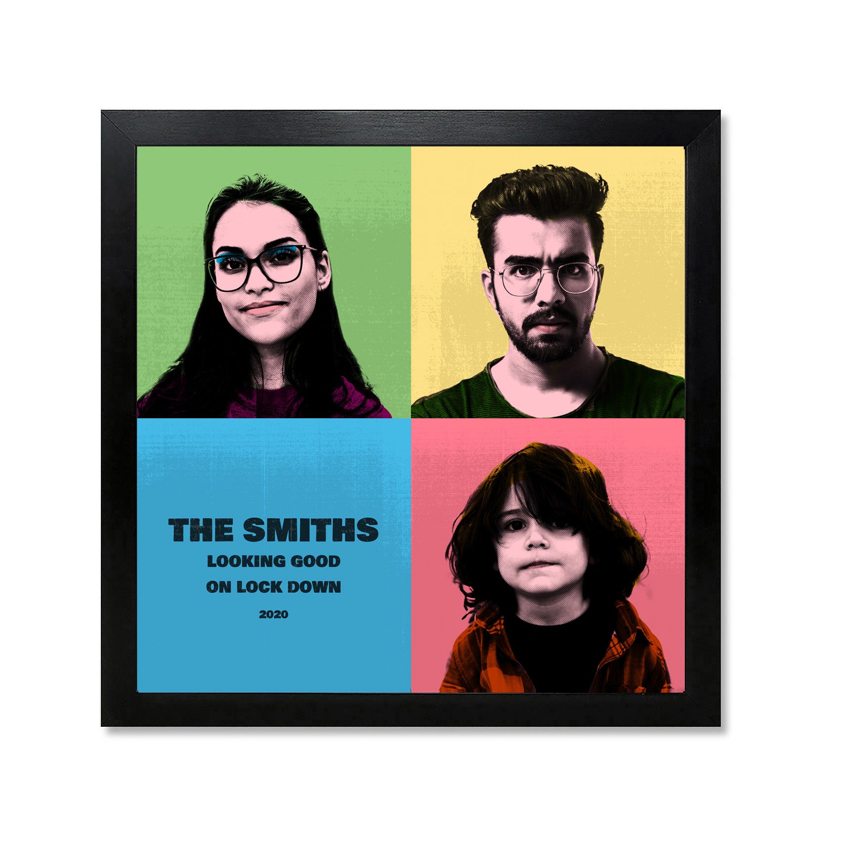 This colourful Pop Art portrait of your family will brighten up any room. You can add up to four photos and fill it up or leave squares blank for a bit of colour, you can even add a special message or saying if you like.